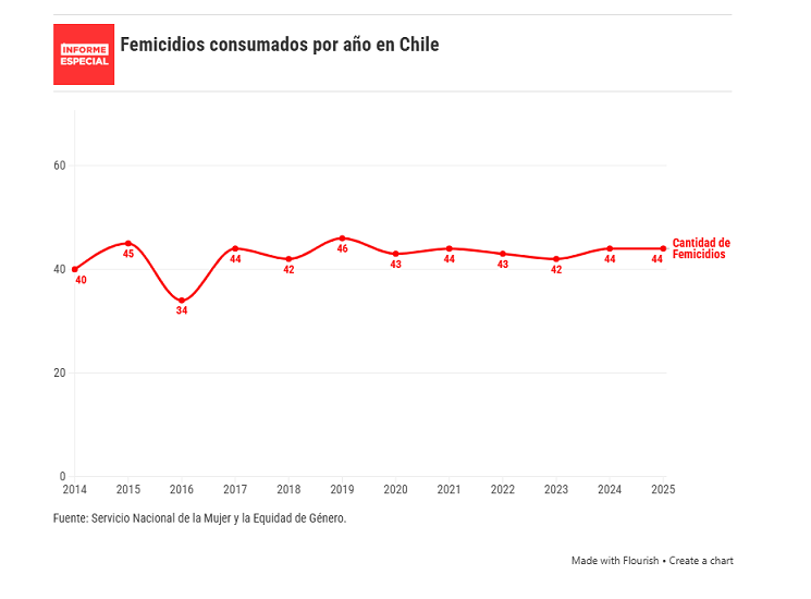 Según datos del Servicio Nacional de la Mujer y la Equidad de Género, 2025 terminó con 44 femicidios y 330 femicidios frustrados. En la víspera de un nuevo 8M, las cifras muestran un escenario donde el delito no cede, mientras las expertas apuntan a una estructura cultural férrea.