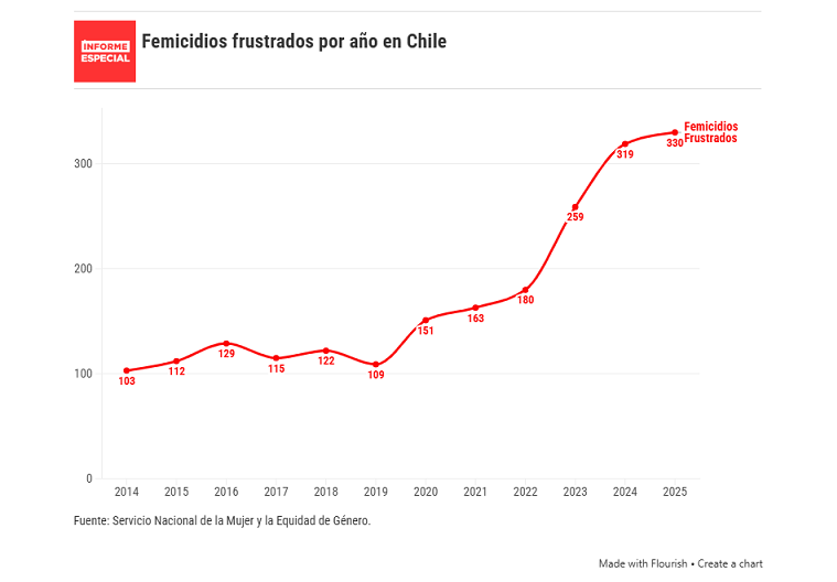 Los femicidios frustrados no tienen una curva más auspiciosa; todo lo contrario, están en ascenso constante.